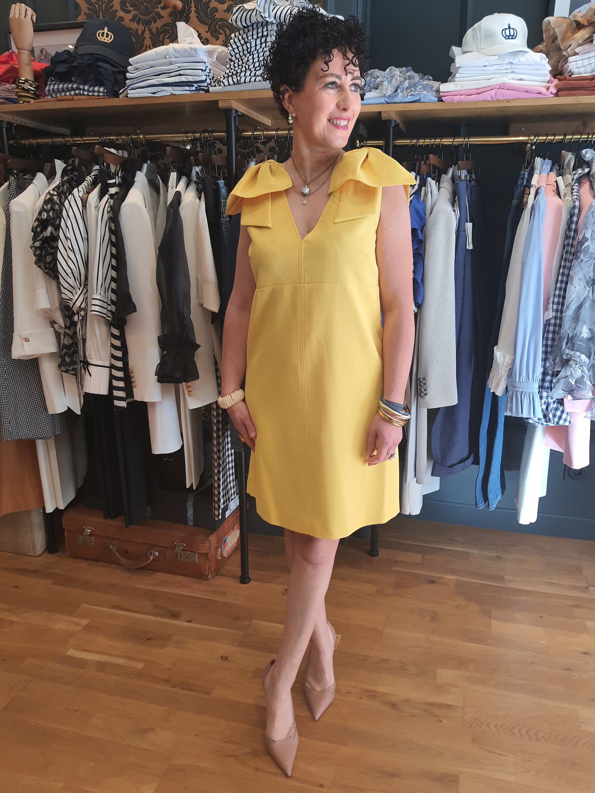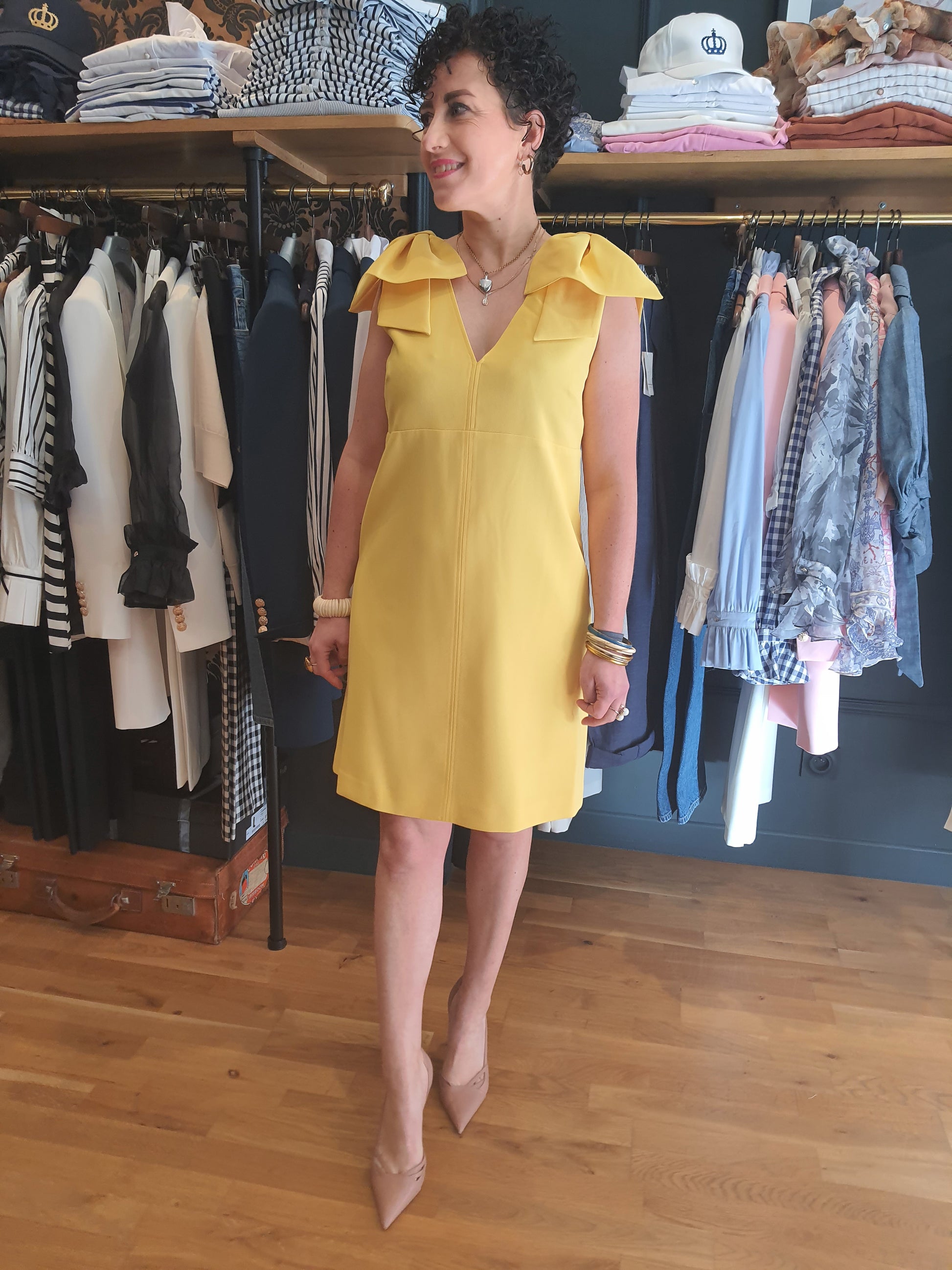 Au top de sa féminité avec sa belle encolure V et ses noeuds sur les épaules !
